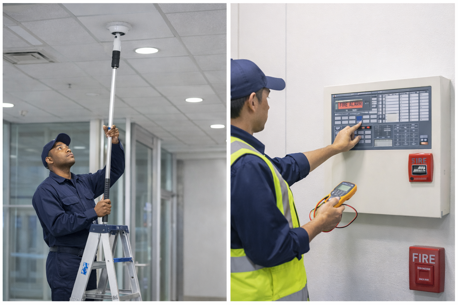 Comprehensive security device installation services to protect your commercial facility. We integrate advanced security solutions that work seamlessly with your fire safety systems for complete protection.